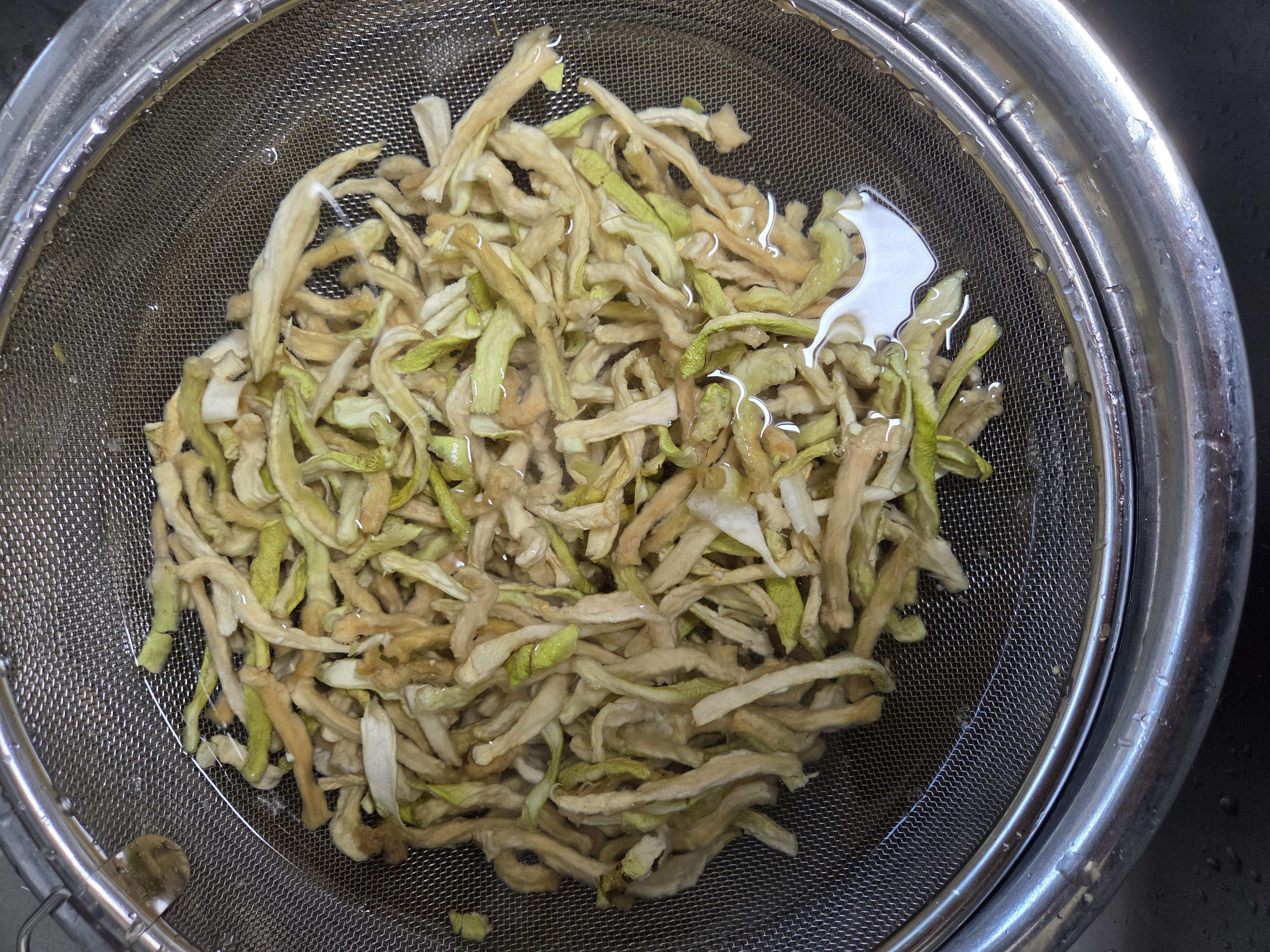 무말랭이를 3번정도 잘씻어서 깨끗한 물에 잠시 불려준다.